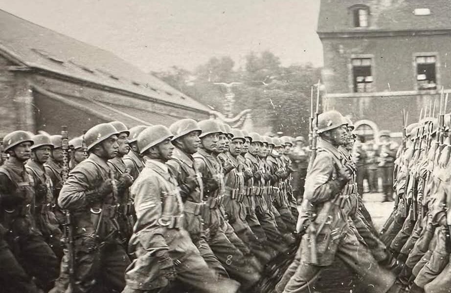 Die Parade im Bild vermittelt den Eindruck einer Armee in voller Stärke, doch der historische Kontext zeigt ein anderes Bild. Ab 1941 begann der Krieg an der Ostfront, der für Millionen Soldaten im Desaster endete. Hunger, Kälte und der erbarmungslose Widerstand der sowjetischen Armeen führten zu gigantischen Verlusten. Viele der Männer, die hier im Gleichschritt marschieren, sollten die nächsten Jahre nicht überleben.